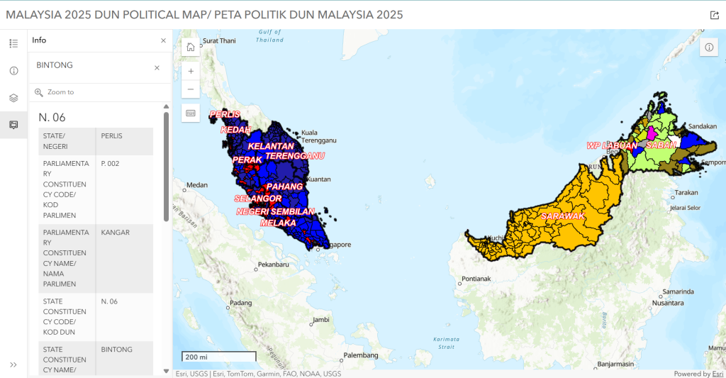 Semak peta di bawah atau melalui pautan untuk mendapatkan gambaran umum sempadan pilihan raya DUN dan Kerusi Parlimen Malaysia sejak 2019. Peta ini sesuai untuk semakan pantas dan bukan untuk pengenalan tepat lokasi mengundi anda.