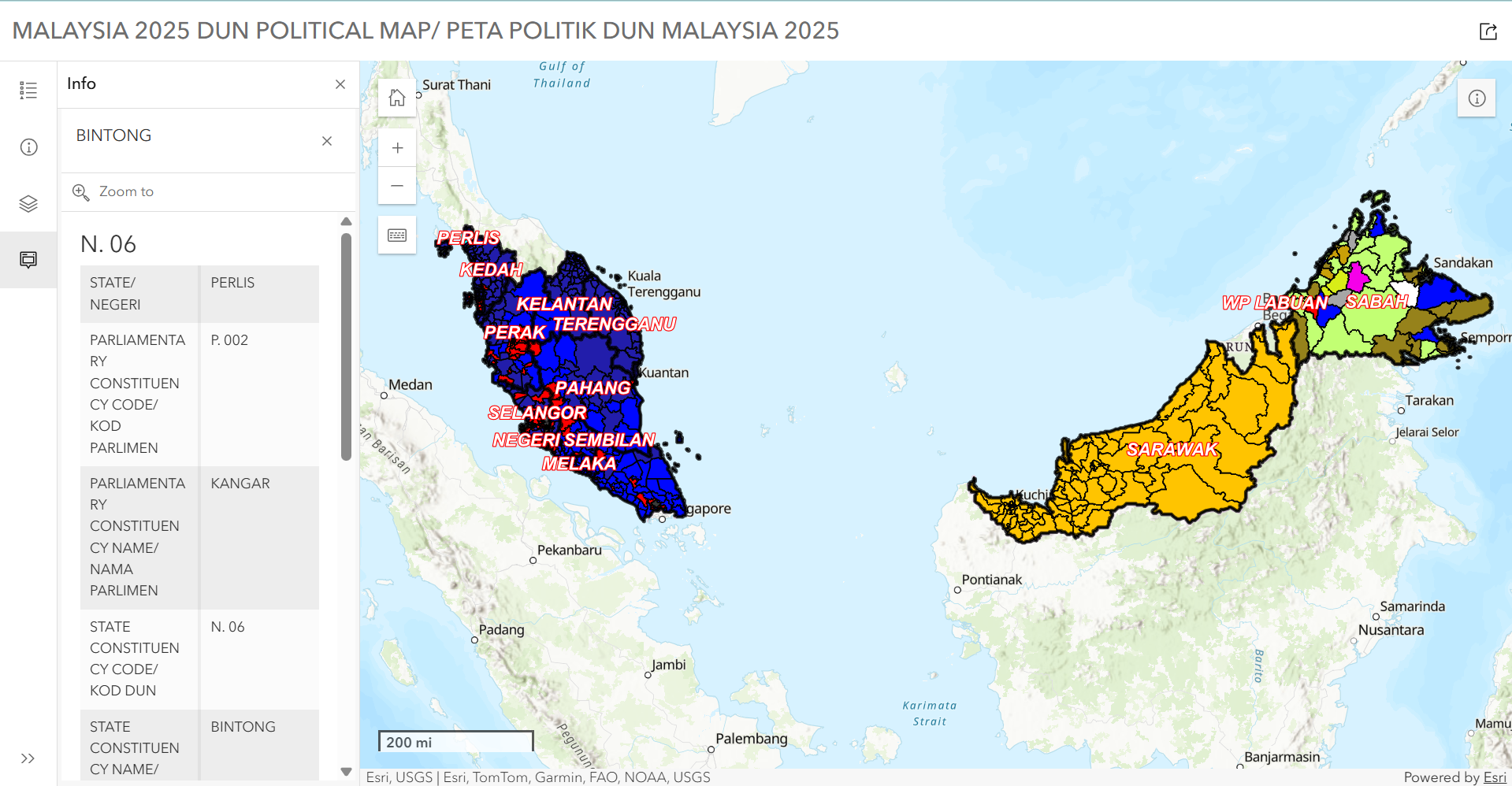 - Pilih salah satu peta (Etnik Pengundi Malaysia, Pengundi Belia Malaysia,Pengundi Awal Malaysia) melalui pautan di atas aplikasi tersebut